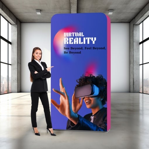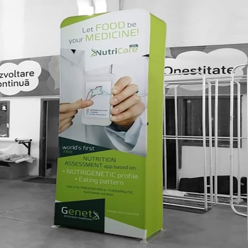 The Click system is an innovative display system consisting of a lightweight aluminum inner structure covered with fire-resistant, high-resolution printed fabric.