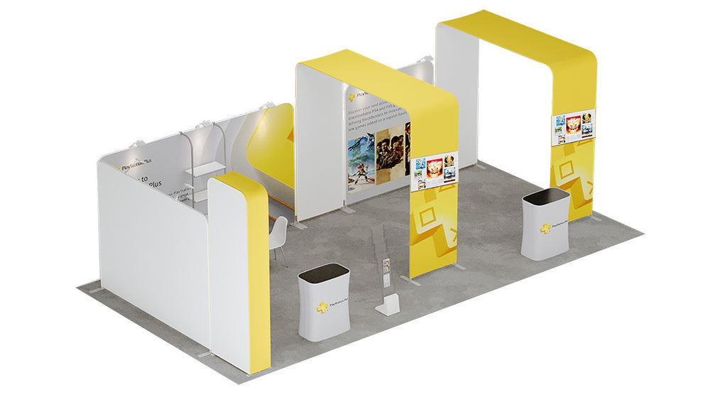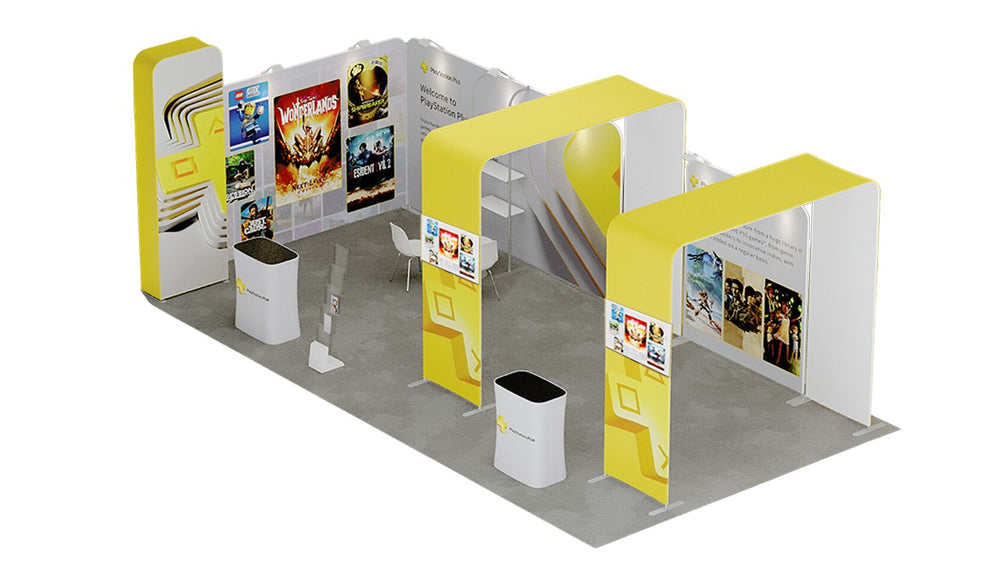 Stand for an exhibition area of 8 × 4 m , 2 open sides, consisting of: