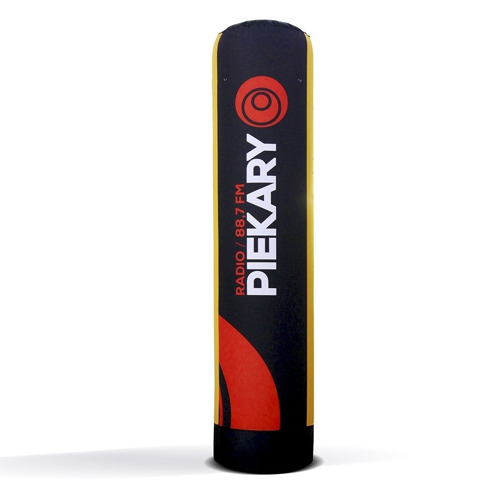 The structure of the inflatable totem is based on air-filled modules. The textile print is applied to this structure with the utmost ease.