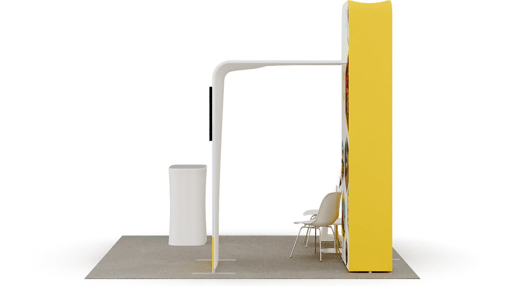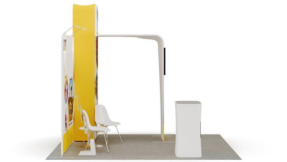 Presentation stand for an exhibition area of 3 × 2 m with 3 open sides , consisting of: