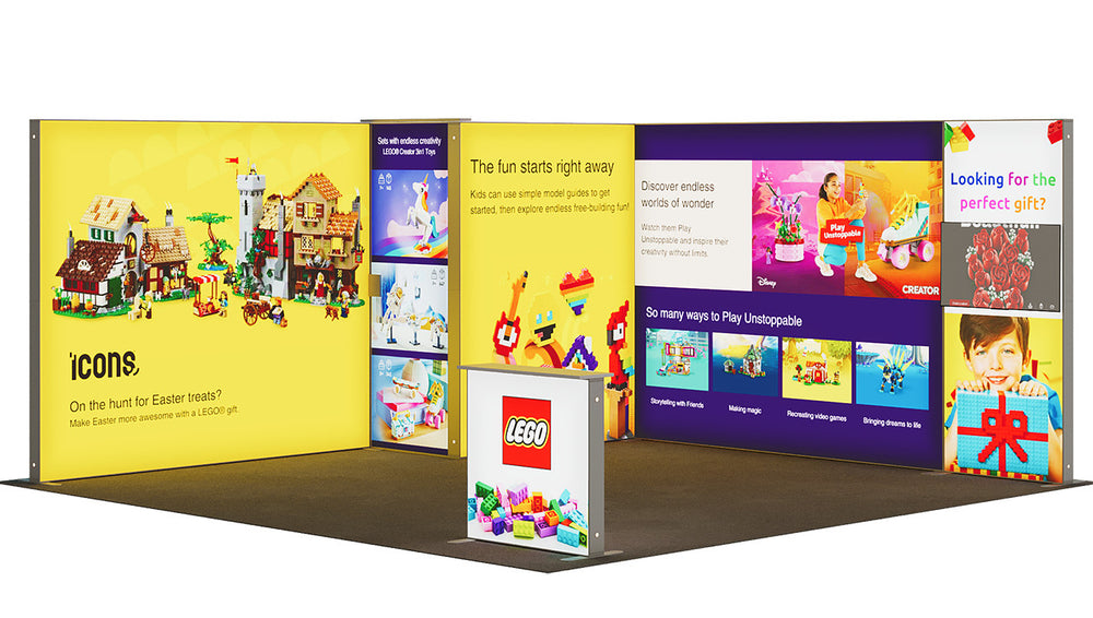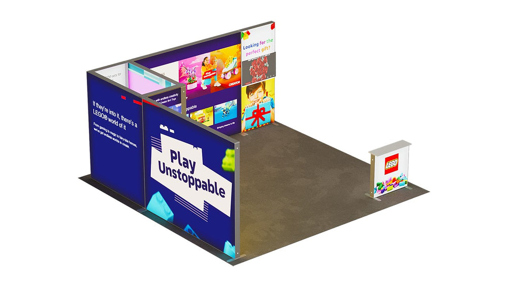 Stand for an exhibition area of 5 × 5 m , 2 open sides , consisting of: