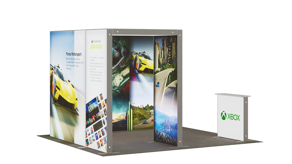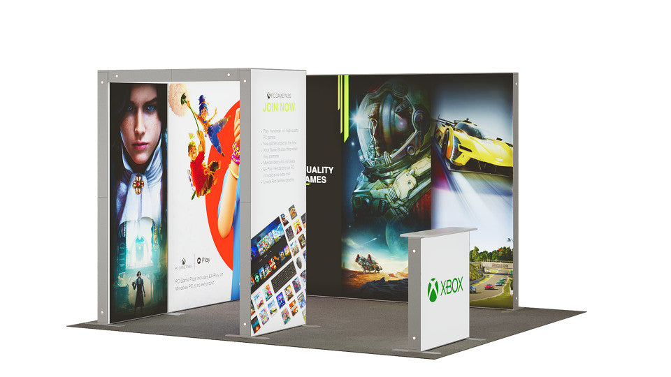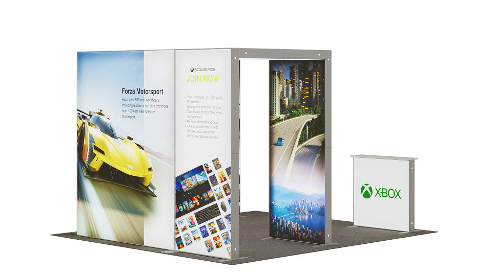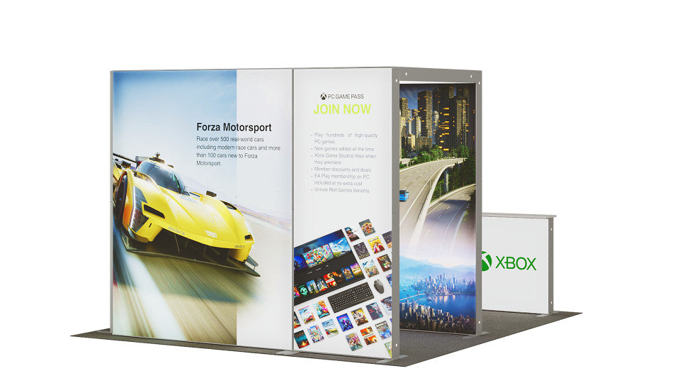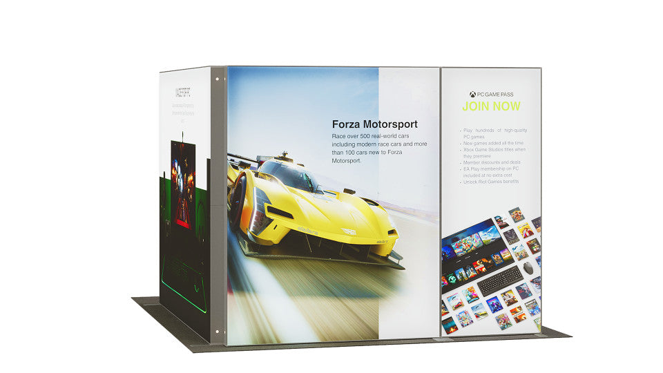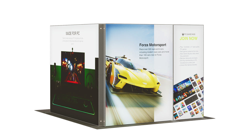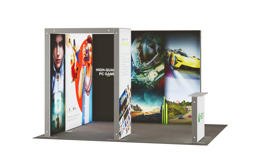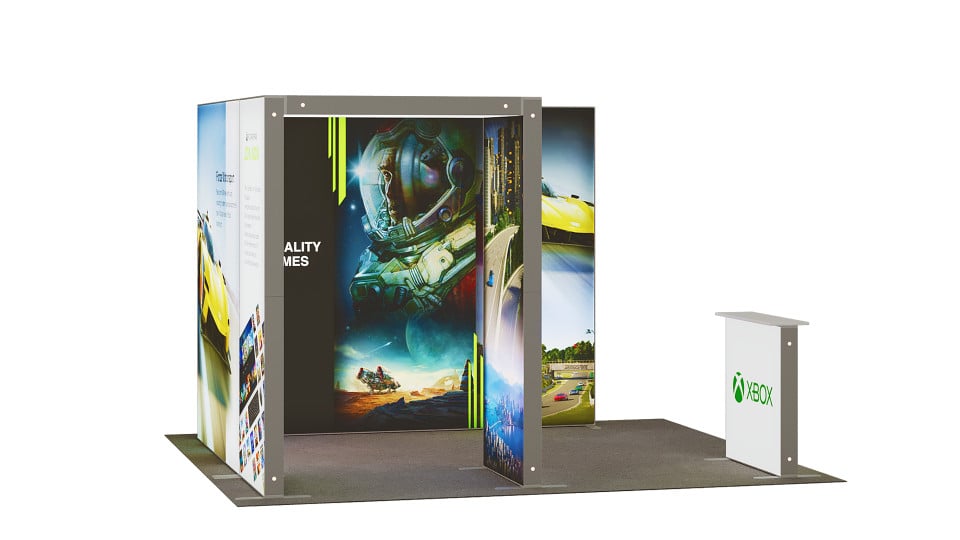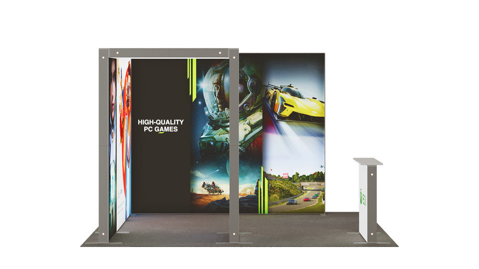Presentation stand for an exhibition area of 4 × 3 m , one open side, consisting of: