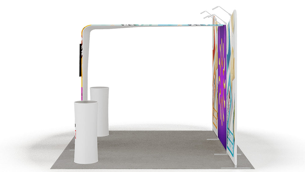 Stand for an exhibition area of 5 × 3 m , 3 open sides , consisting of: