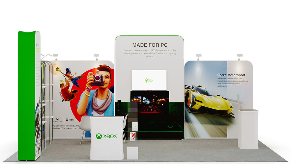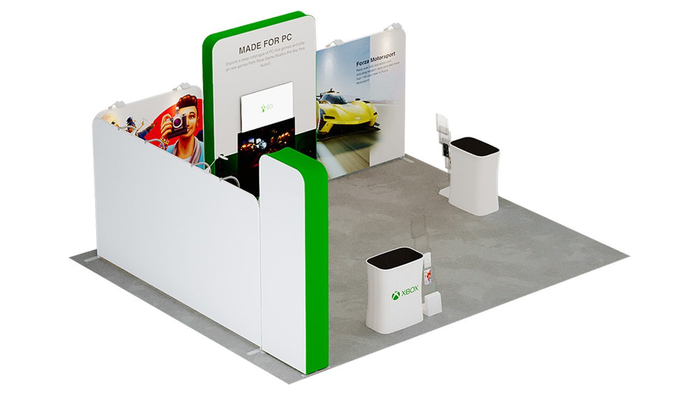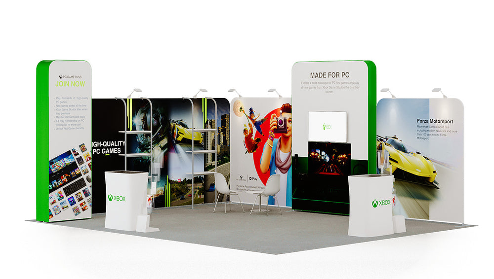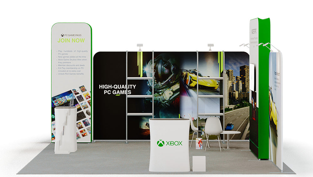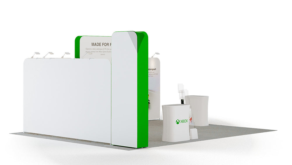 Stand for an exhibition area of 6 × 5 m , 2 open sides, consisting of: