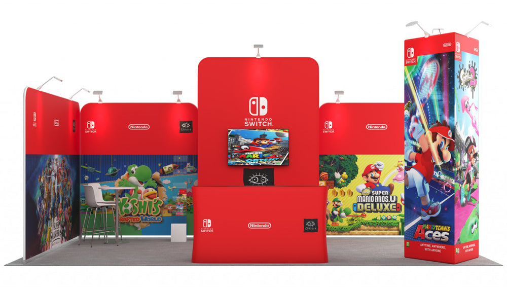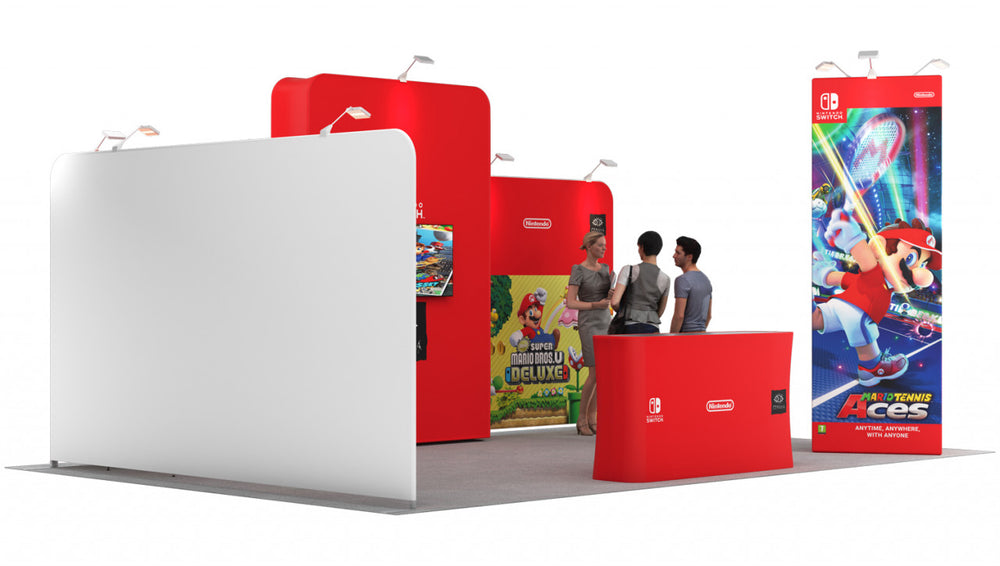 Stand for an exhibition area of 6 × 4 m , 2 open sides , consisting of: