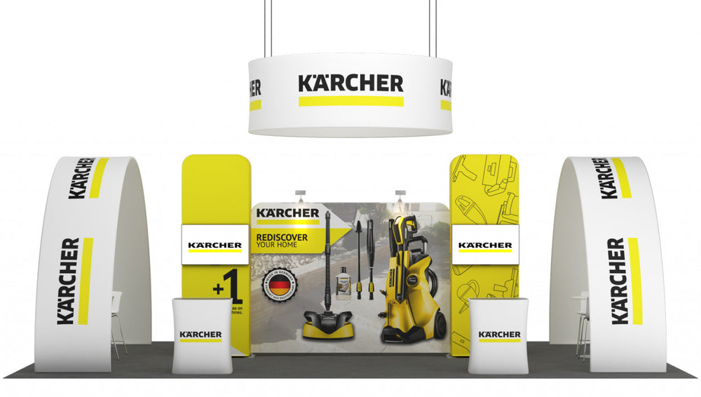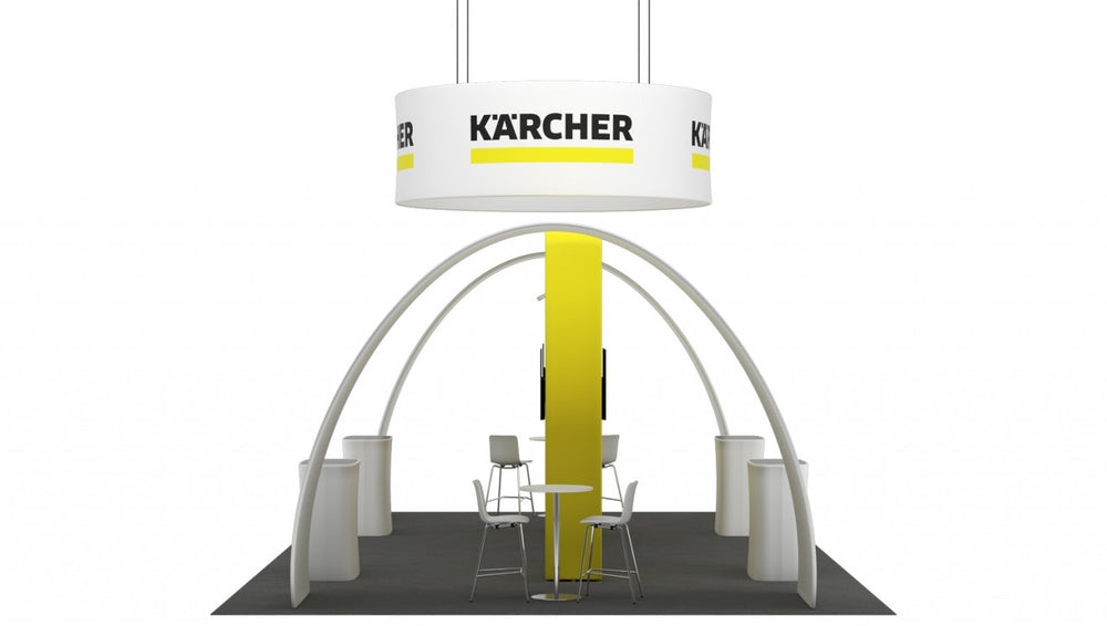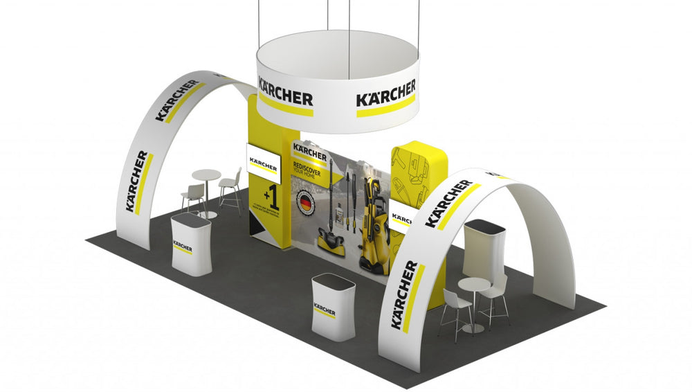 Stand for an exhibition area of 10 × 5 m , island-like, consisting of: