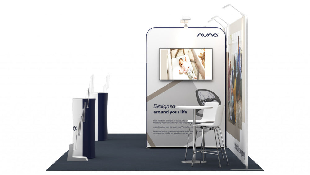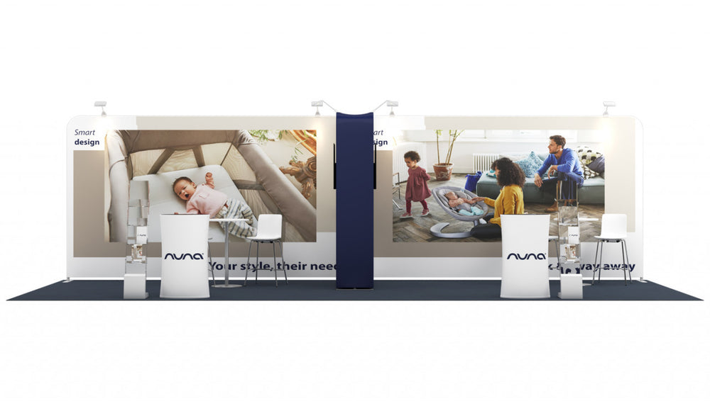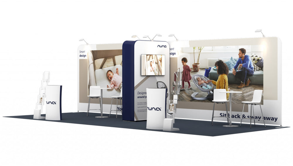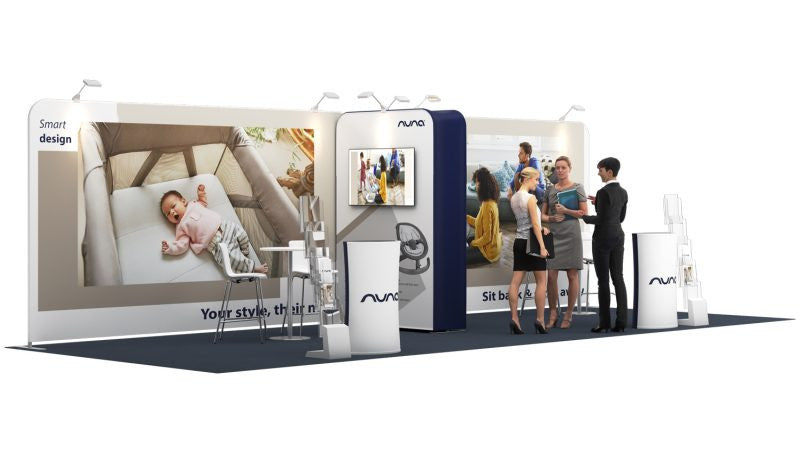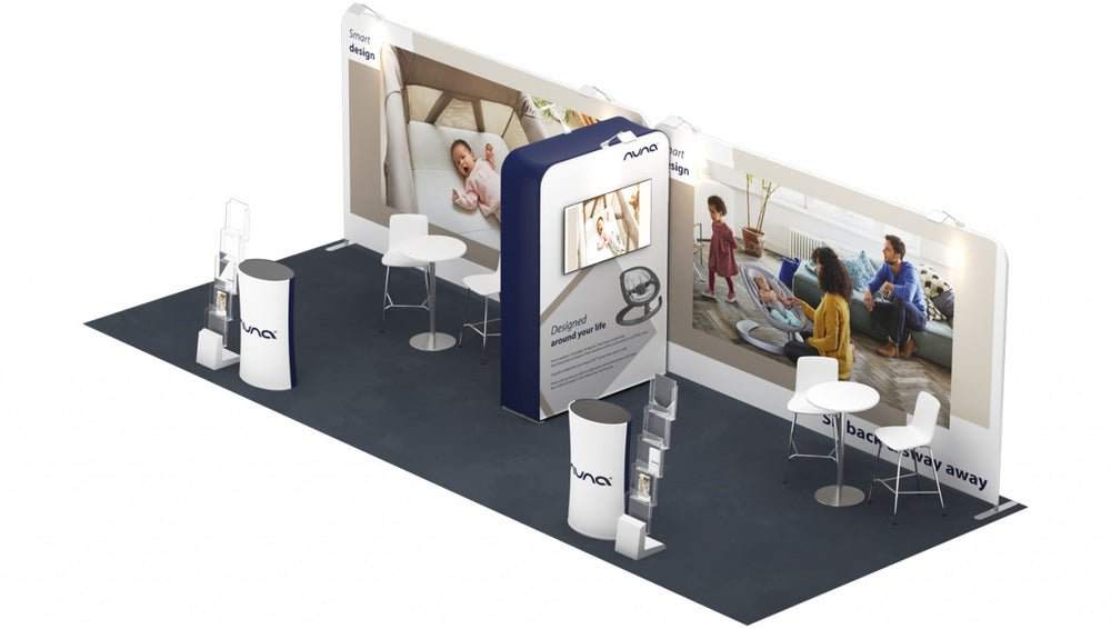 Stand for an exhibition area of 8 × 3 m , 3 open sides , consisting of: