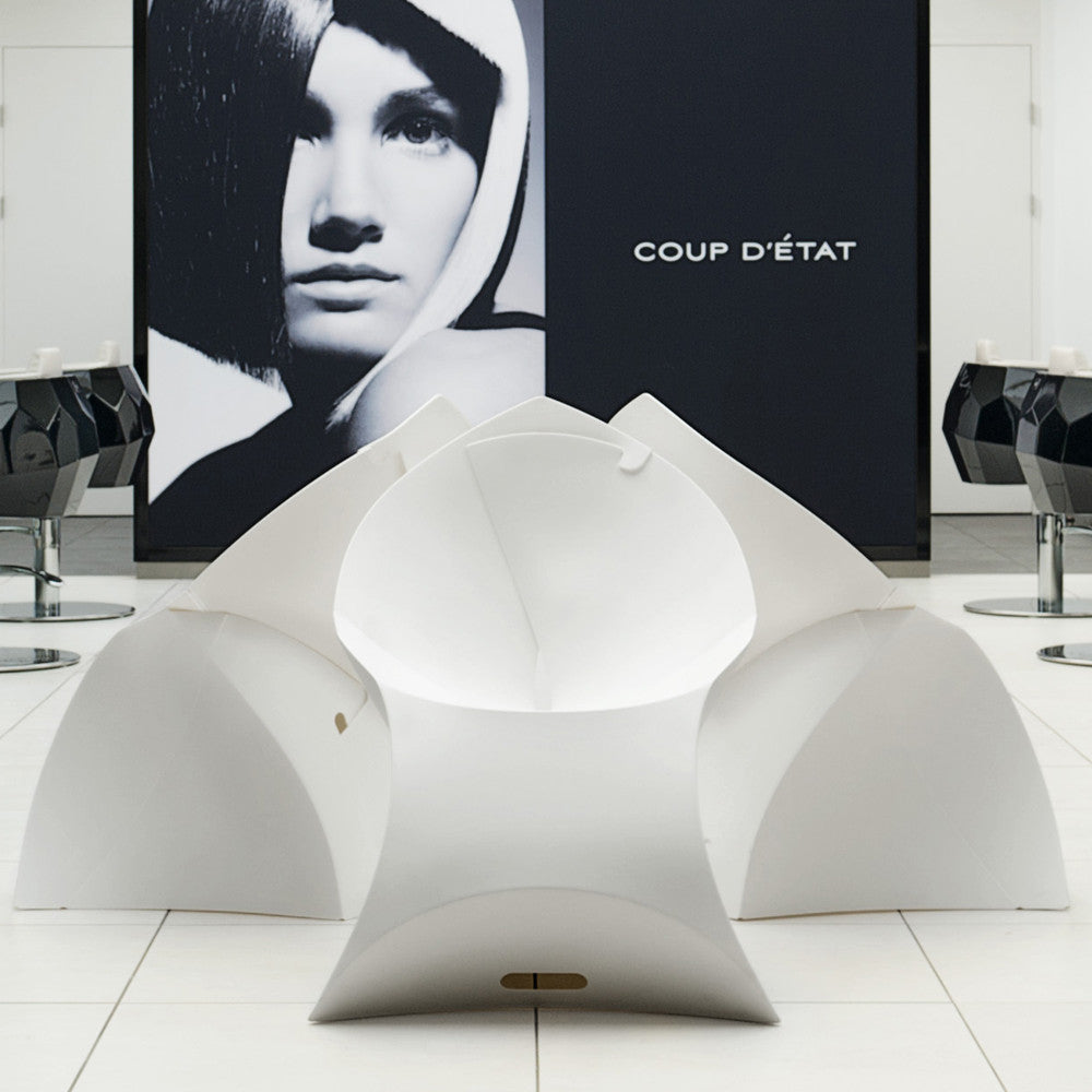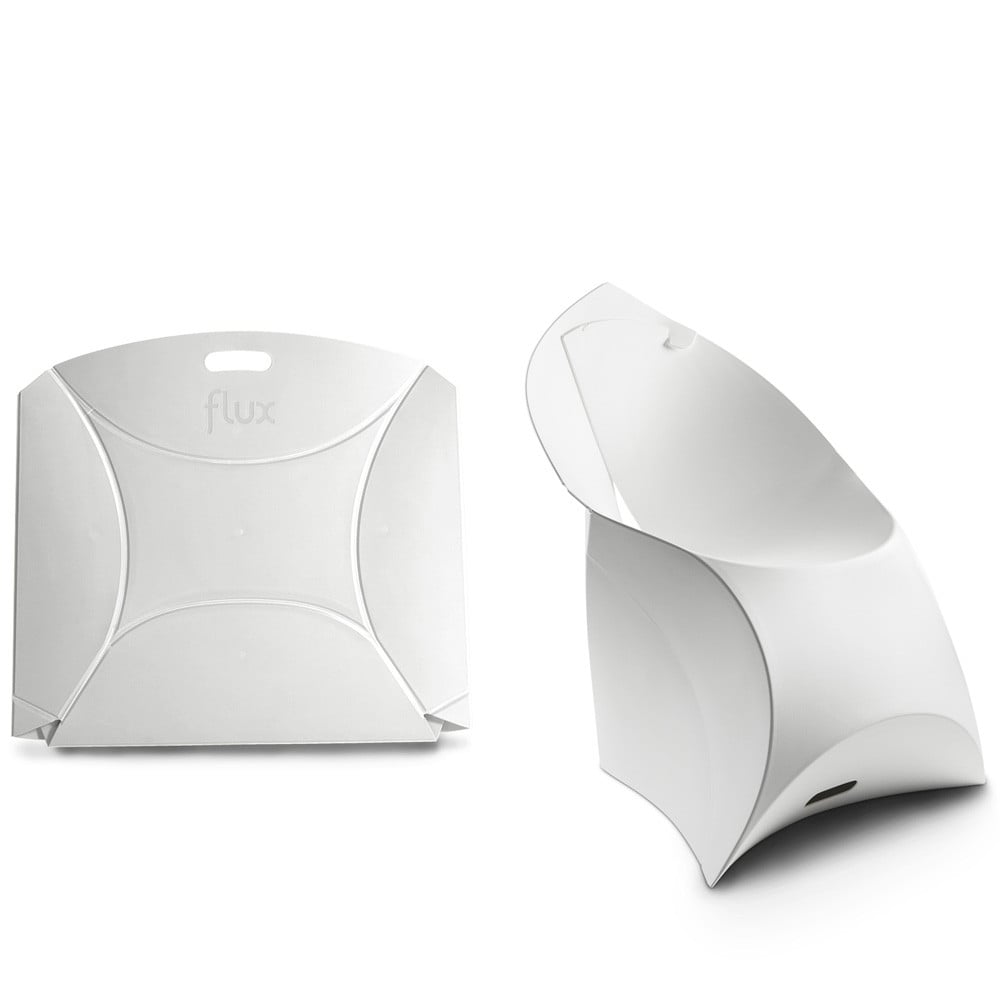 The Flux chair sets up in seconds and packs flat into the trunk of a car. It's light enough to be carried by one person and strong enough to support your weight.