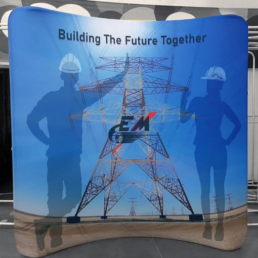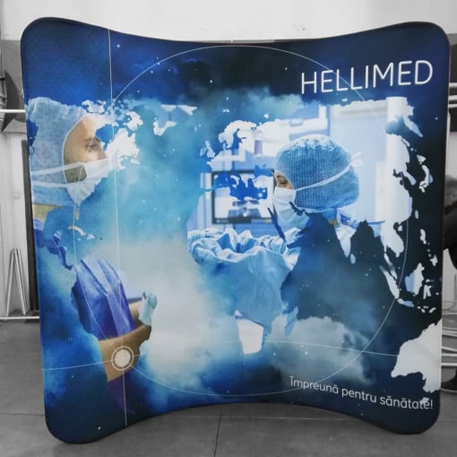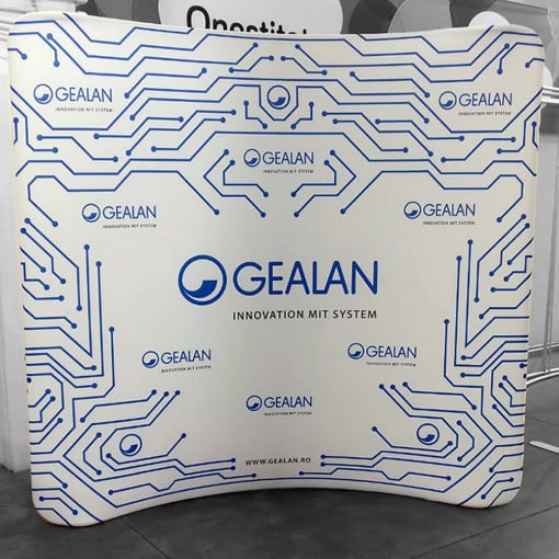 The Click system is an innovative display system consisting of a lightweight aluminum inner structure covered with fire-resistant, high-resolution printed fabric.