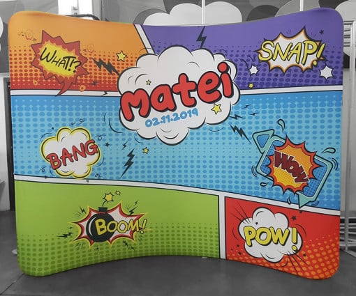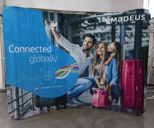 The Click system is an innovative display system consisting of a lightweight aluminum inner structure covered with fire-resistant, high-resolution printed fabric.