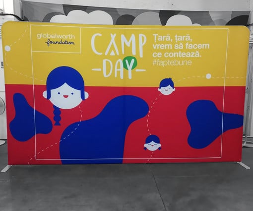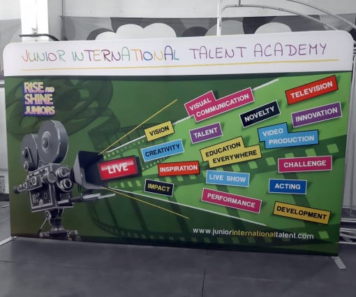 The Click system is an innovative display system consisting of a lightweight aluminum inner structure covered with fire-resistant, high-resolution printed fabric.