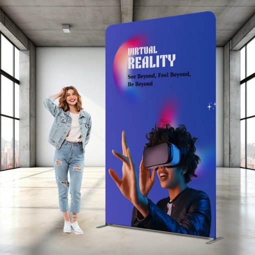 The Click system is an innovative display system consisting of a lightweight aluminum inner structure covered with fire-resistant, high-resolution printed fabric.