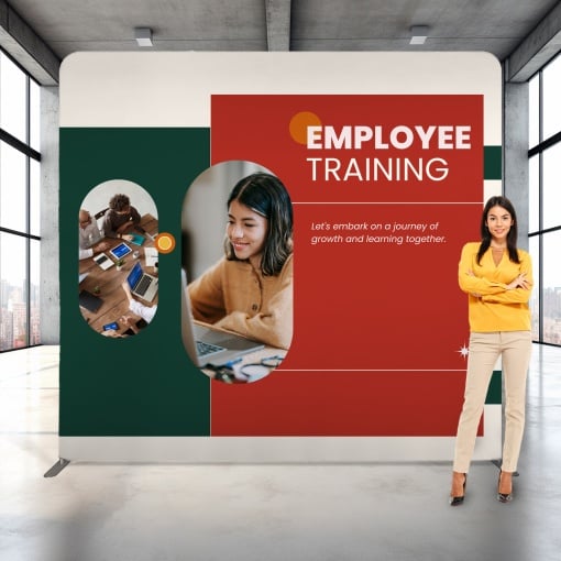The Click system is an innovative display system consisting of a lightweight aluminum inner structure covered with fire-resistant, high-resolution printed fabric.
