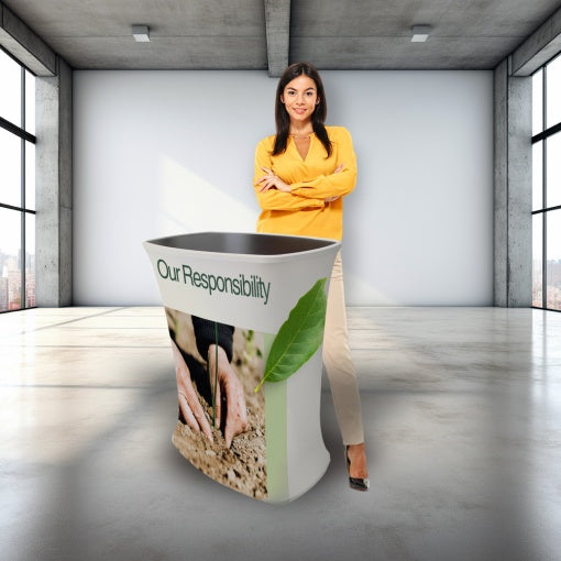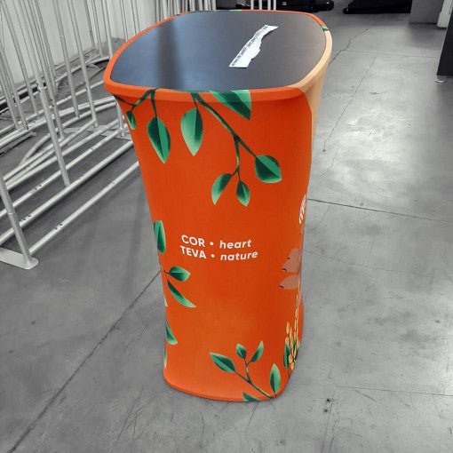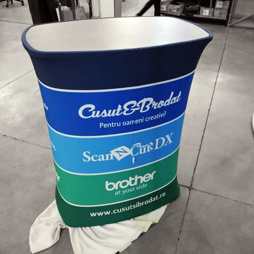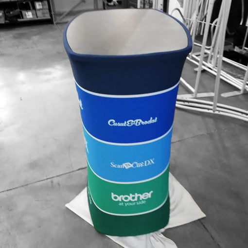 The Click system is an innovative display system consisting of a lightweight aluminum inner structure wrapped in fire-resistant fabric and printed with high resolution.