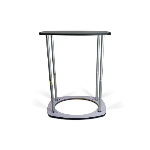 The oval desk weighs only 12 kg and has the following dimensions when assembled: 80 x 102 x 53 cm (W x H x D) and when packed only 84 x 12 x 58 cm.
