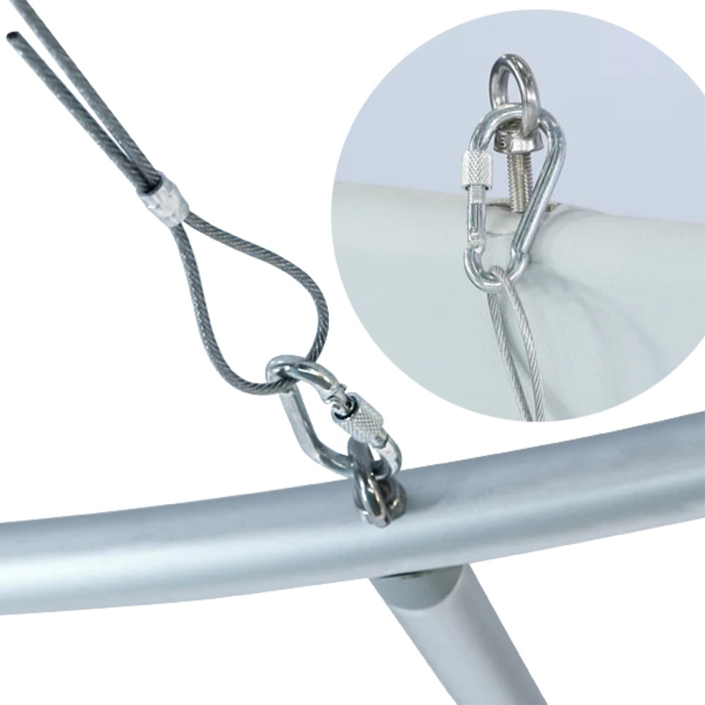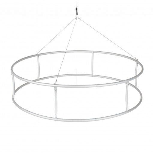 The 3 m long circular hanging structure weighs only 20 kg and has the following dimensions when assembled: 300 x 91 x 300 cm (W x H x D) and only 25 x 25 x 130 cm when packed.