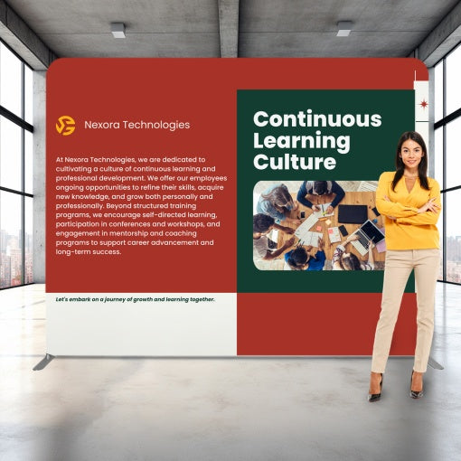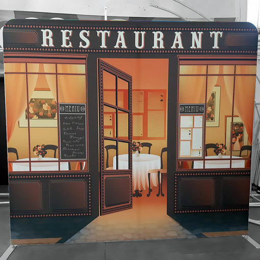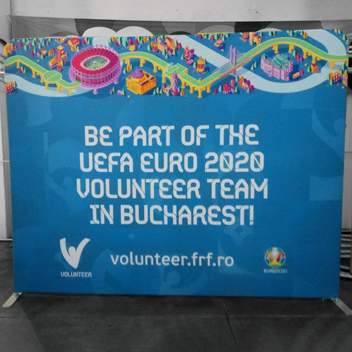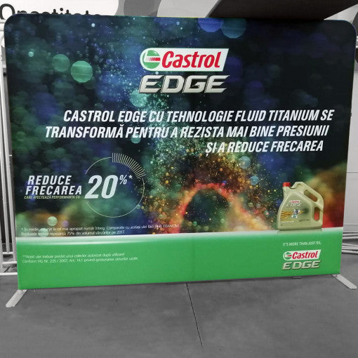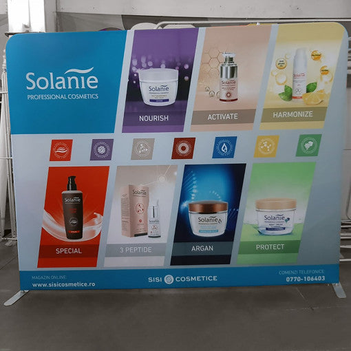 The Click system is an innovative display system consisting of a lightweight aluminum inner structure covered with fire-resistant, high-resolution printed fabric.