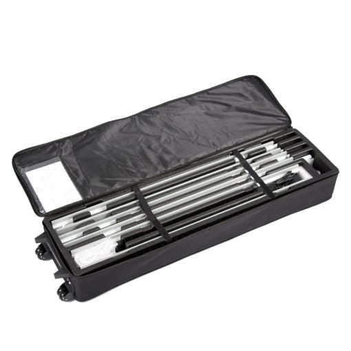 When packed, the light box weighs only 49 kg and measures 138 x 39 x 17 cm - 4 pockets It is delivered in sturdy carrying bags with wheels, which are equipped with extruded polystyrene foam that secures the product.