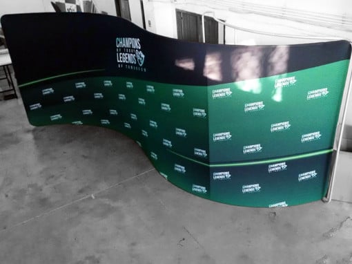 The Click system is an innovative display system consisting of a lightweight aluminum inner structure covered with fire-resistant, high-resolution printed fabric.